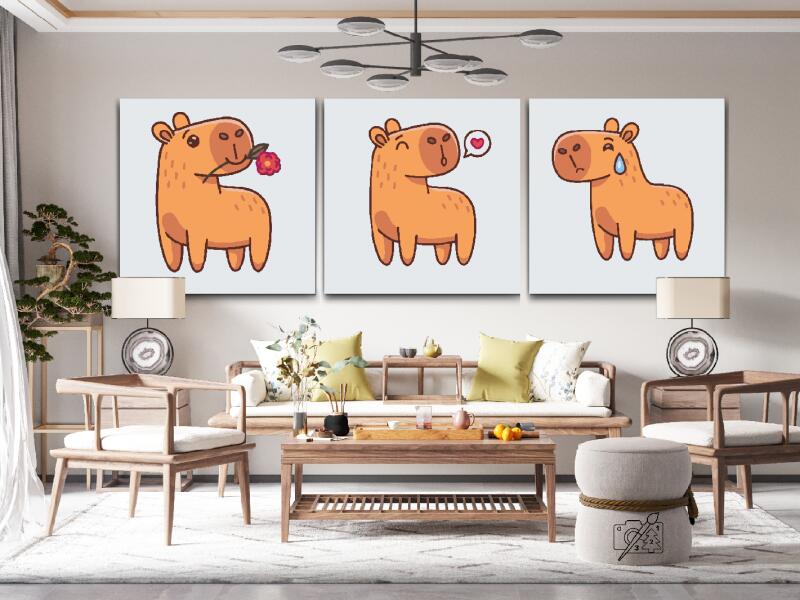 Festés számok szerint - Kapibara (3 darab vászonkép) Méret: 50x50cm (3db), Keretezés: Keret nélkül (csak a vászon)
