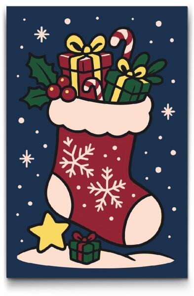 Festés számok szerint - Karácsonyi zokni Méret: 40x60cm, Keretezés: Műanyagtáblával