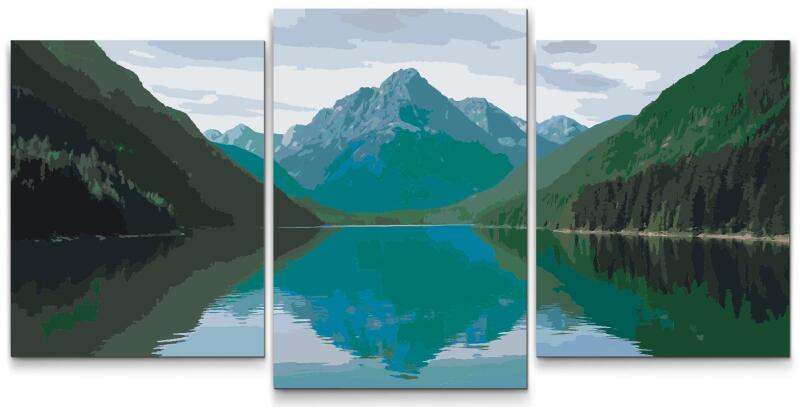 Festés számok szerint - Tavi visszatükröződés (3 darab vászonkép) Méret: V1 (3db), Keretezés: Keret nélkül (csak a vászon)