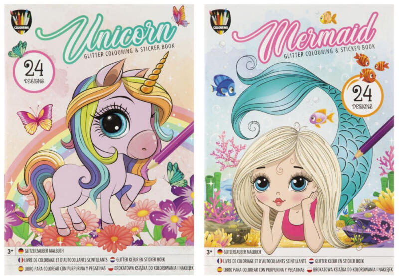 Merülj el a színezés örömében a két féle színezőkönyvben található csodaszép egyszarvú és sellő modellekkel! Műveidet ráadásul most csillogó matricákkal díszítheted!