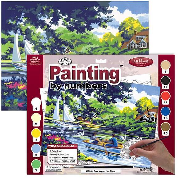 Royal & Langnickel Számozott kifestő készlet, akrilfesték+ecset, 29x39 cm - Csónakázás a folyón
