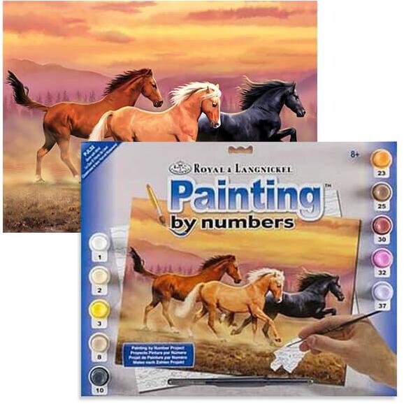 Royal & Langnickel Számozott kifestő készlet, akrilfesték+ecset, 29x39 cm - Vadlovak