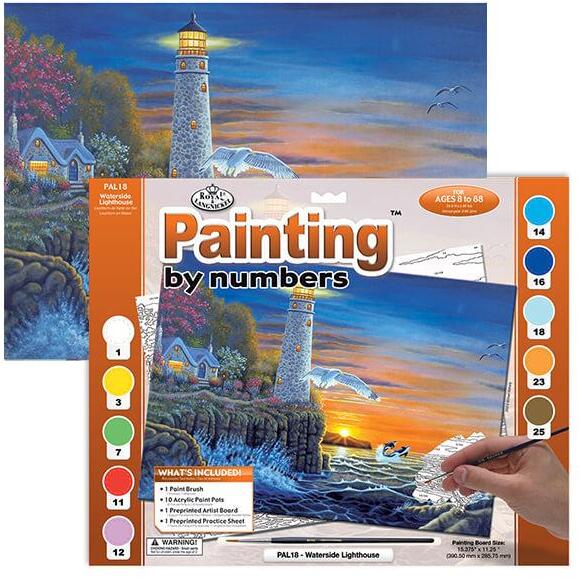Royal & Langnickel Számozott kifestő készlet, akrilfesték+ecset, 29x39 cm - Vízparti világítótorony