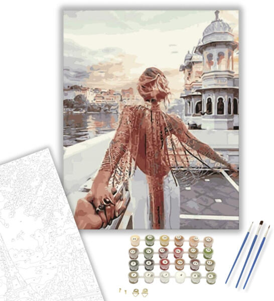 | Termékcímke | hindu építészet, kézenfogva, naplemente, nő, romantikus jelenet, templom, utazás, vízpart |