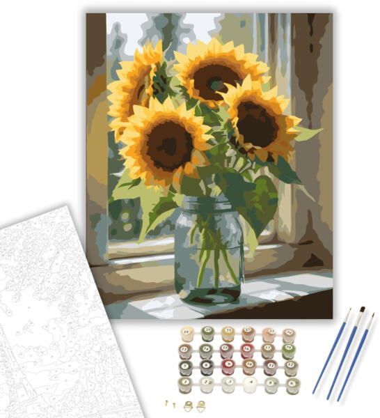 | Termékcímke | ablak, csokor, fény, napraforgó, zöld levelek, üveg |