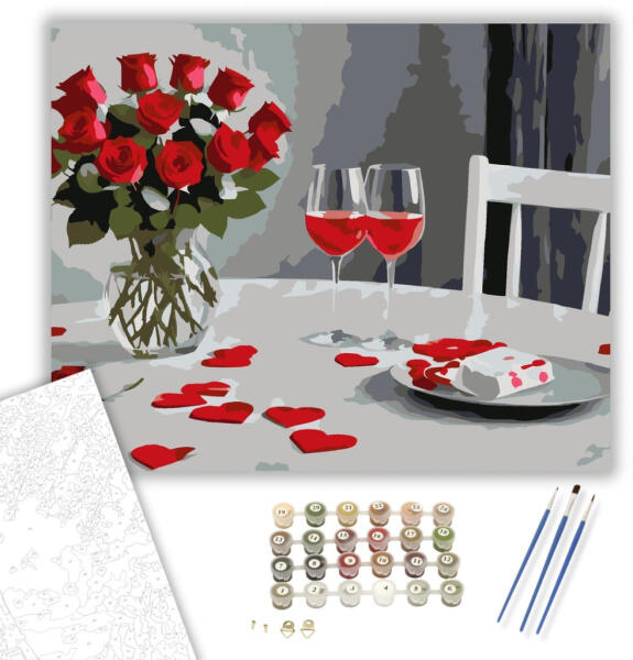 | Termékcímke | asztal, borospohár, romantikus vacsora, rózsák, vörösbor |